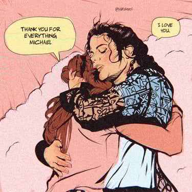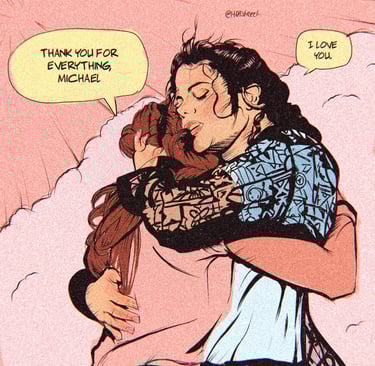 L: This is like picking your favorite child, impossible. But I did really love creating this one comic artwork of Michael hugging a fan, surrounded by pink clouds. The fan says: “Thank you for everything, Michael” which he responds to with: “I love you.” I really felt like I wanted to capture the love and connection between Michael and his fans by creating an artwork, as it’s such a special, strong and unique one. And I think it worked, as thousands of people re-shared it when I posted it. I think it’s my most liked and shared art to date. Fans just recognize that special connection in the artwork and feel the love in it, which makes me feel happy and fulfilled, like I did my “job.”